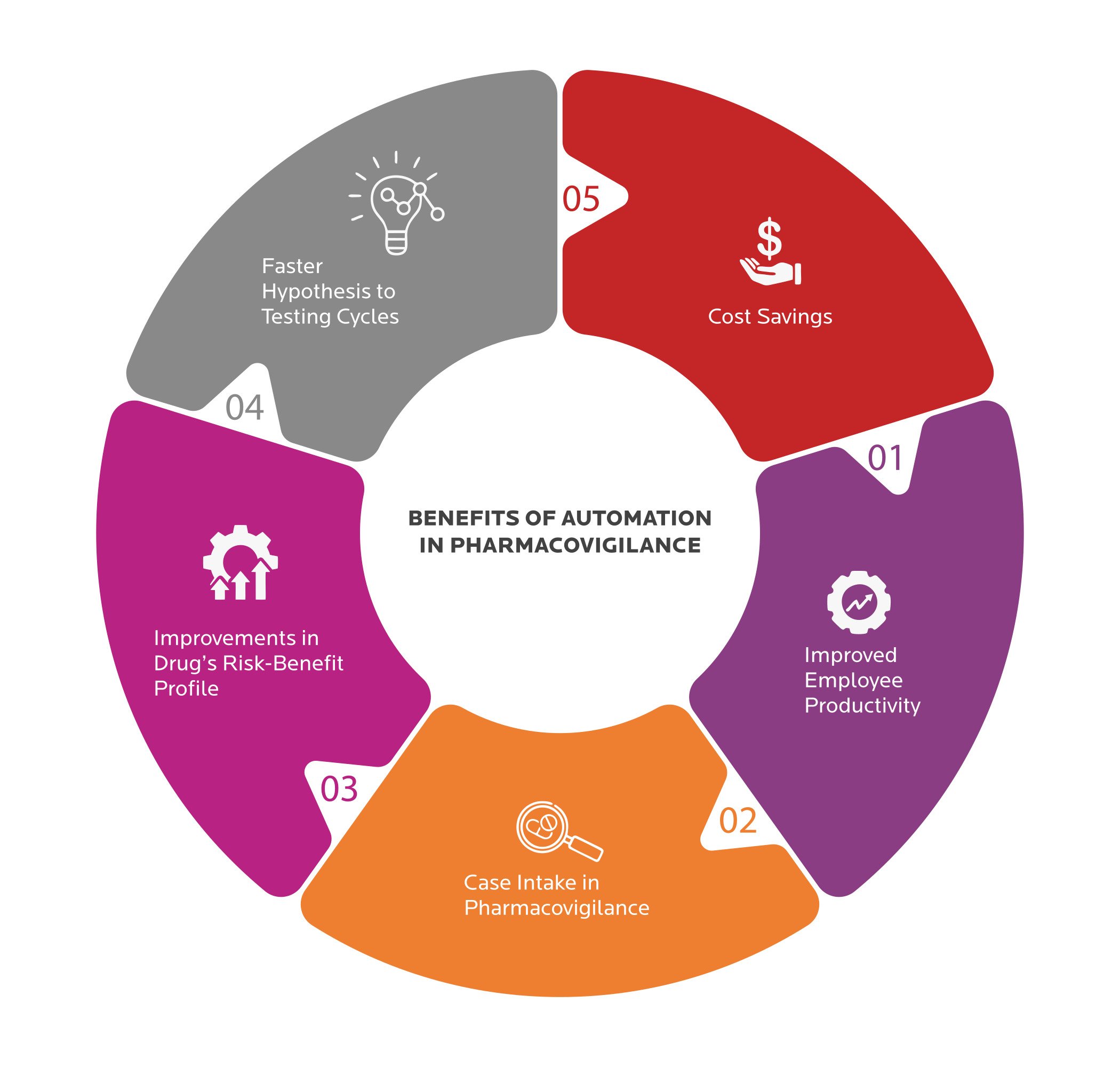 While the business case for automation in pharmacovigilance primarily centers around gaining process efficiency, a more significant benefit is the freeing of resources to allocate the same for performing value-added tasks. Monitoring and evaluating adverse drug reactions, real-world evidence analysis, and signal investigation forms the basis of functions executed by resources freed up due to automation in pharmacovigilance. An additional consequence of automating drug safety programs is improved quality assurance, accuracy and consistency in testing cycles, and reduced PV costs. A 2020 McKinsey study reports the potential of automating as much as 70% of PV-related tasks, the business value for which can be realized within three years of implementation.