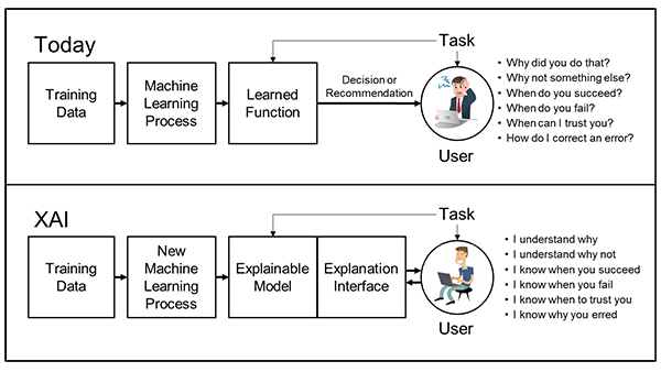 The image provides a visual representation of XAI and how it potentially affects the end-user.