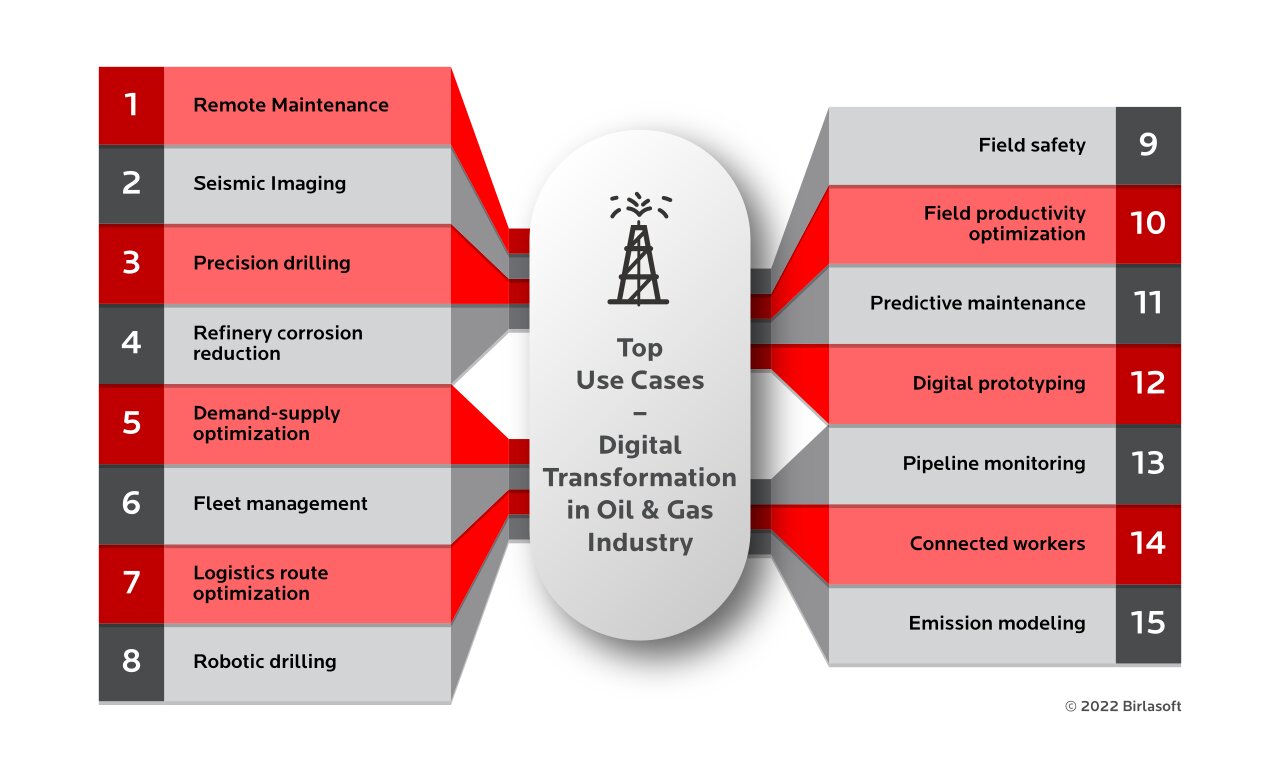 digitalization in the oil and gas sector by 2025. Benefits of $640 billion worth can be created for the wider section of society by successfully digitalizing the oil industry. The wider section of the society includes customers, productivity improvements, reducing water usage, and lowering emissions. Several environmental benefits such as reducing CO2 -equivalent (CO2 e) emissions and avoiding oil spills can also be realized by digitalizing the entire value chain of the oil and gas industry.