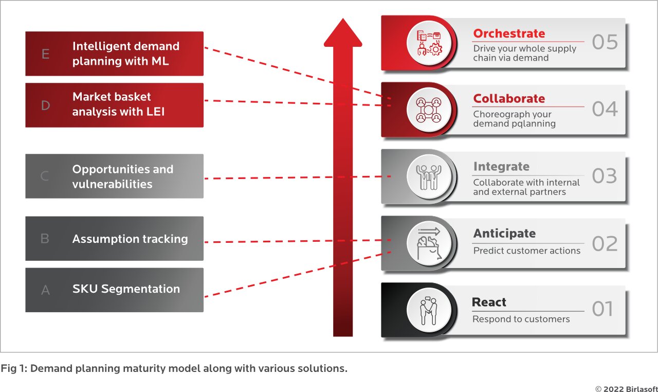 Organizations can assess the state of their demand planning processes by identifying where they fall in the following five levels of demand planning maturity :
