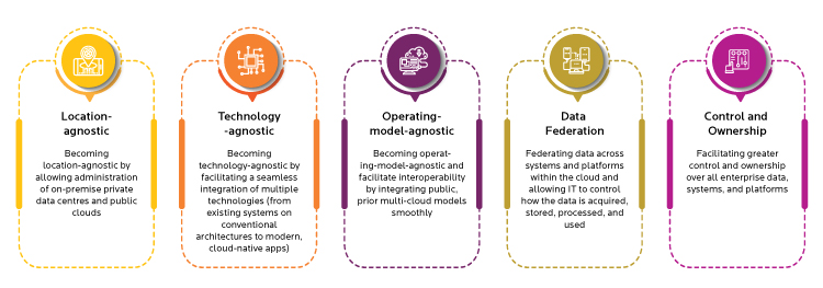 - Becoming operating-model-agnostic and facilitate interoperability by integrating public, private, or multi-cloud models smoothly