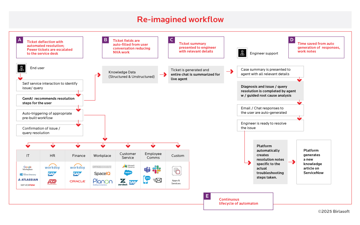 - Deflection of ~50% issues: Agentic AI can handle approximately half of the customer interactions across channels like chat, email, and voice, reducing the workload on human agents. This makes it especially valuable for IT Service Desks, where burnout has consistently affected overburdened teams.
