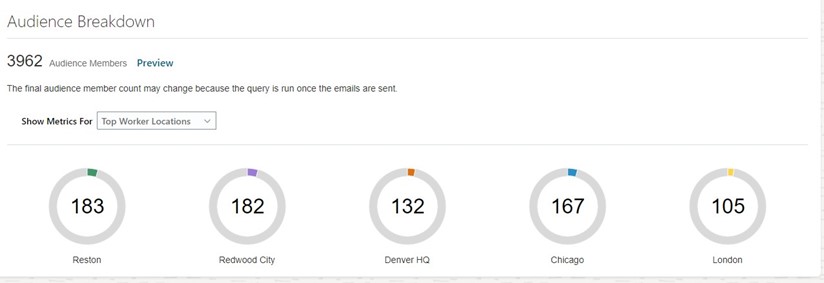 HCM Communicate provides a dashboard that offers real-time insights into employee engagement. Users can access breakdowns of the recipient population based on geography, business functions, and statistics on who has read and responded to messages. This feature is particularly useful when employees are spread across multiple locations, allowing organizations to gauge the impact of their communications before sending them.