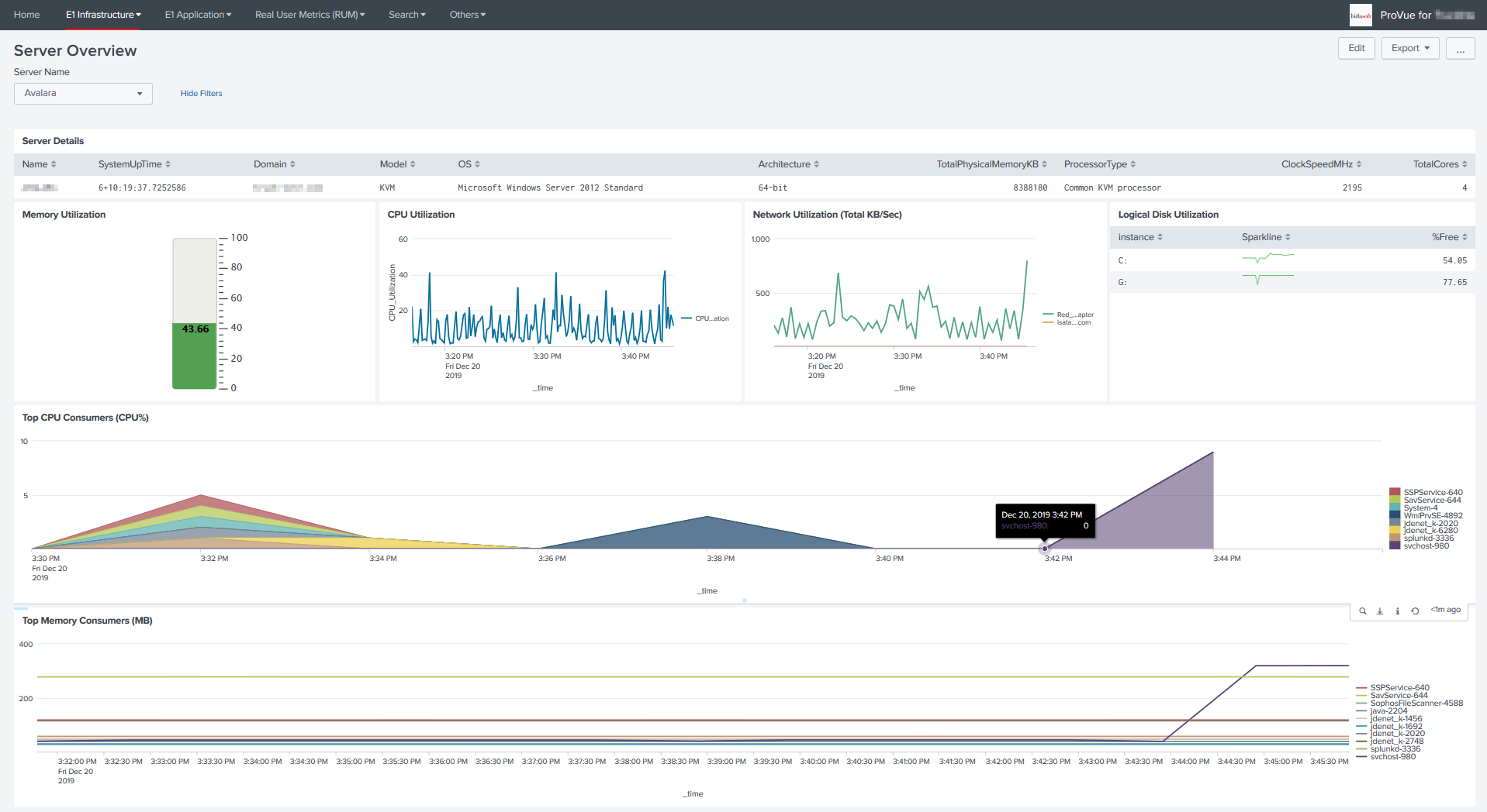 ProVue Advanced Monitoring for JD Edwards is designed to bring power and simplicity to the process of monitoring your JD Edwards EnterpriseOne (E1) landscape. ProVue lets you go beyond monitoring the OS and network level metrics for E1 servers. It enables you to dive deeper into the inner working of E1. ProVue monitors in real-time kernel metrics, UBE performance, log files, JVM performance, end-user experience and provides proactive customizable alerts. ProVue also stores all metrics for historical searches, letting you go back in time when troubleshooting issues.