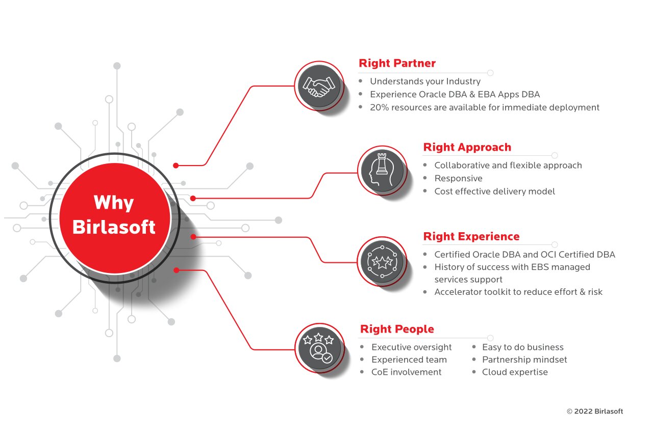 As an Oracle cloud go-to-partner, Birlasoft’s EBS consultants are positioned to work alongside your company to deliver differentiation using technology. With our deep Oracle expertise, we have created an unenviable record of accomplishment of successfully delivering 19c upgrades across the globe. We commit to save up to the 25% of cost in executing your upgrade initiative through the differentiated offerings and innovative solutions.