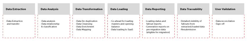 • Capable of migrating large class of data including Finance, SCM, Procurement, Project etc.