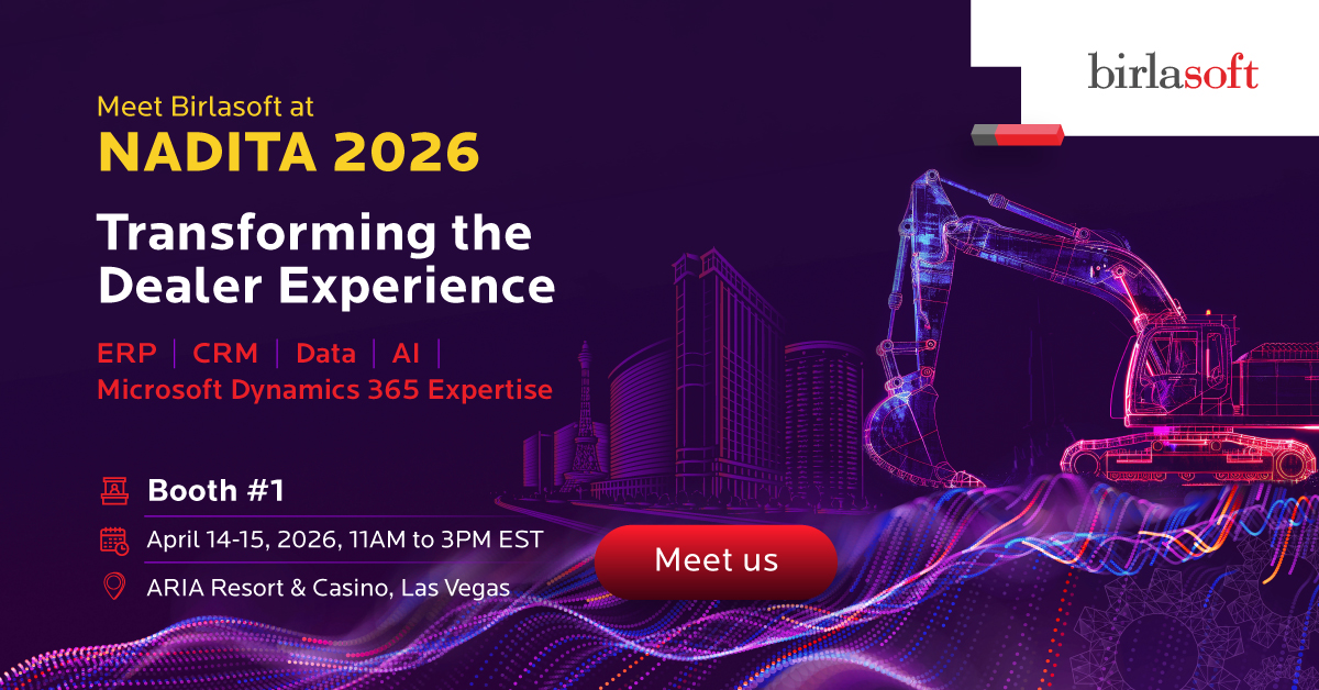 The North American Dealer IT Association (NADITA) Conference brings together IT and business leaders from across the Caterpillar dealer ecosystem to explore what’s next in dealer operations, digital transformation, and enterprise technology strategy. Birlasoft brings decades of manufacturing expertise, combined with proven capabilities in ERP, CRM, and Microsoft Dynamics, to help dealers transform at the core—where real business value is created.